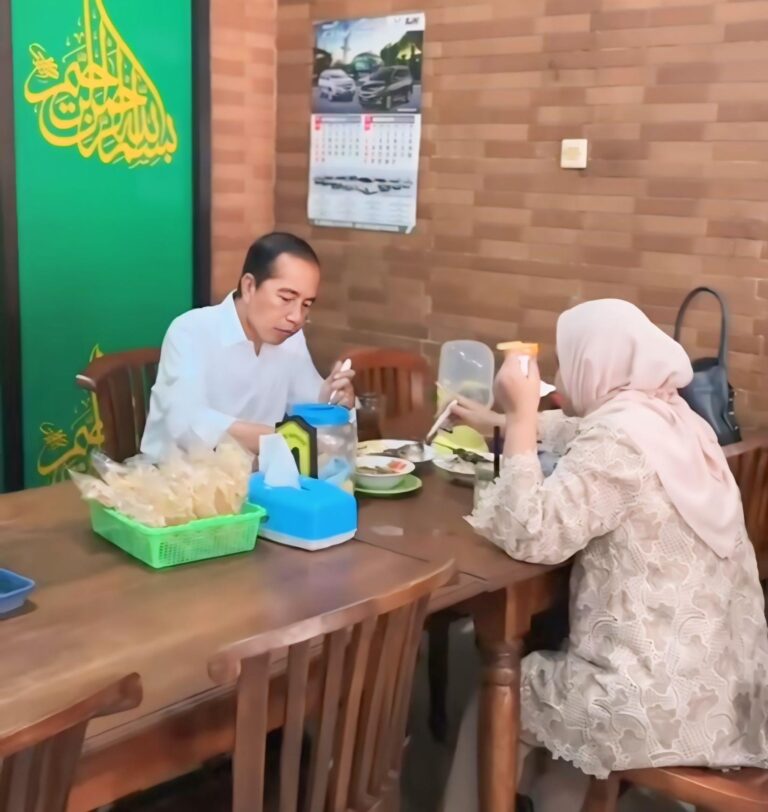 “Saya menyempatkan diri menikmati sate kambing “Mas Di” di kartasura, Kab. Sukoharjo bersama Ibu Iriana,” caption Jokowi di akun Instagram miliknya, pada Hari Rabu (23/10/2024).